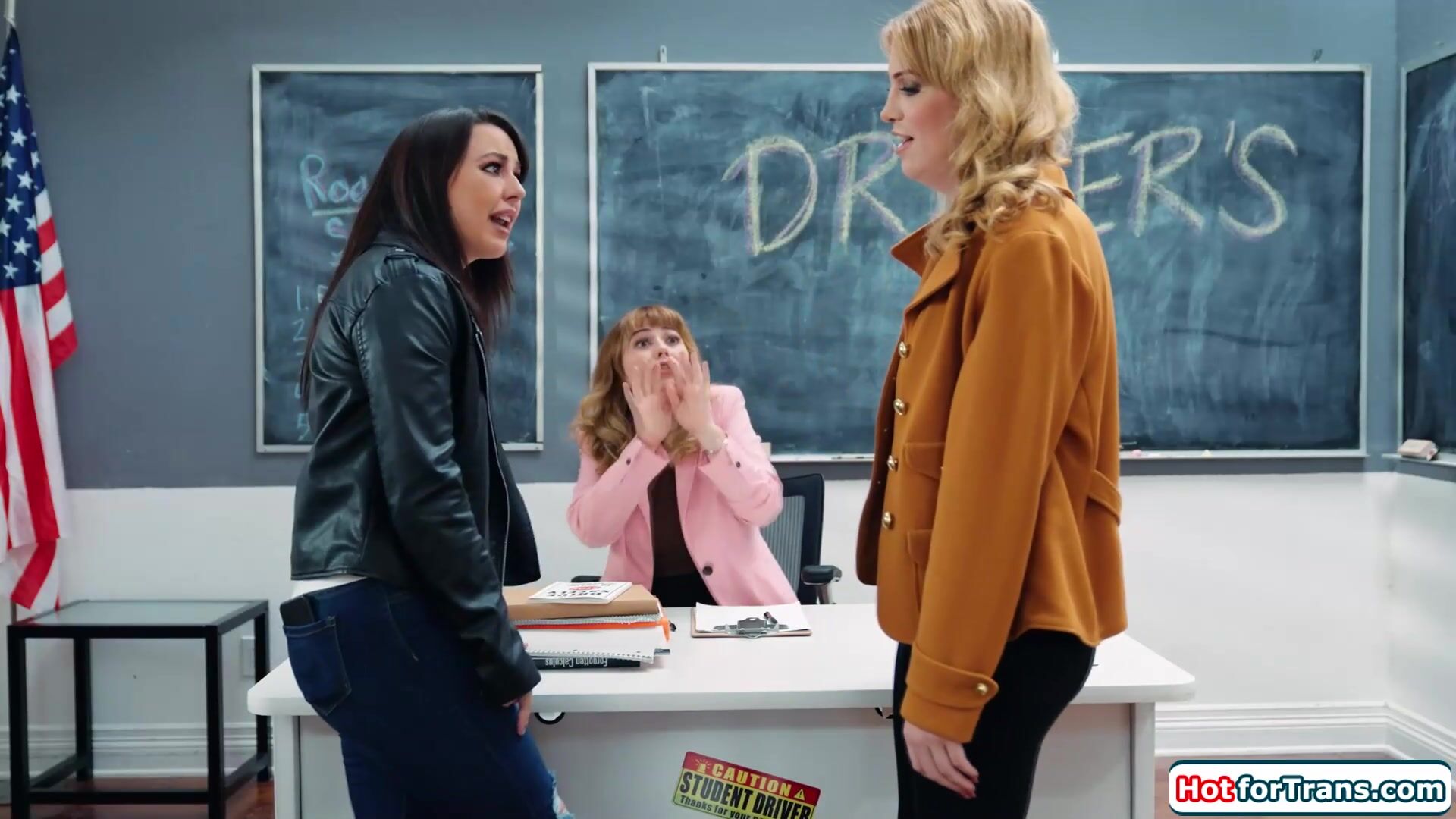 Shemale Erica Cherry and Whitney Wright wound up at drivers ed because of each other.They tear each others clothes off when the tgirl kisses her.They solve it with sex and the small tits brunette sucks trans cock.The ts licks pussy and the babe fucks
