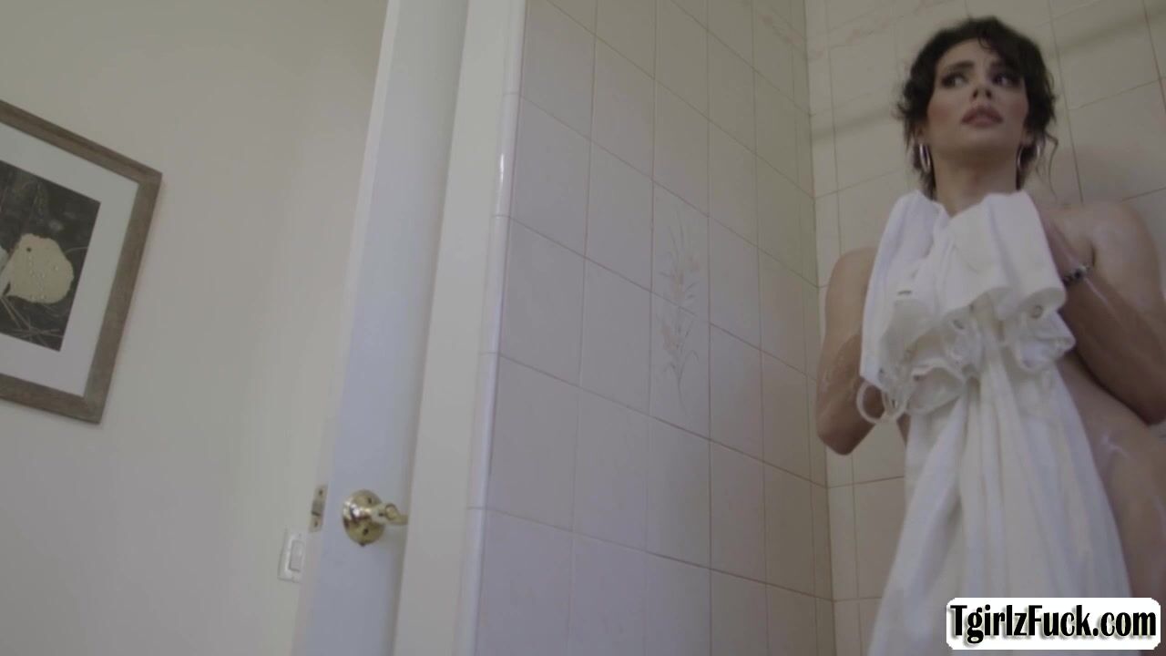 Beautiful brunette transsexual Ariel Demure takes a refreshing bath and masturbas big tranny cock. The big tits tbabe do the laundry and gets her big ass analed doggystyle then she returns the favor by giving hunk straight guy Steve Ricks a deepthroat blowjob.