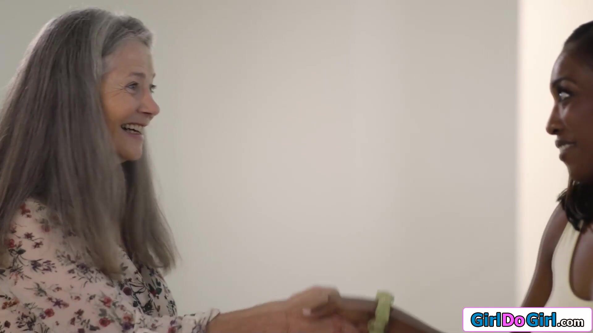 Babes stepmom is shocked to see her black gf under the table and storms out.Finally alone the interracial lesbians kiss and and the busty ebony takes off her girlfriends pants to lick her pussy.The blonde gives her big tits gf oral and is masturbated