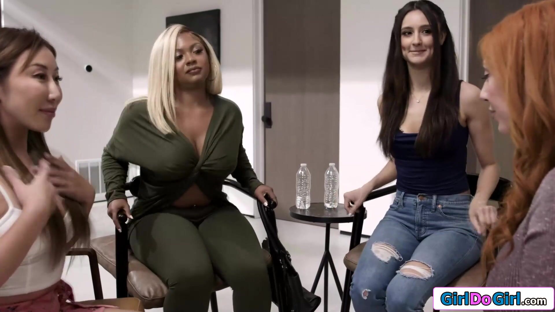 Group of lesbians embrace their squirt and all finger ifo each other until they burst out pussy juice.The busty asian masturbates and orgasms in the big tits milfs mouth as the latina squirts in her face.The interracial lesbos lick and rim for squirt
