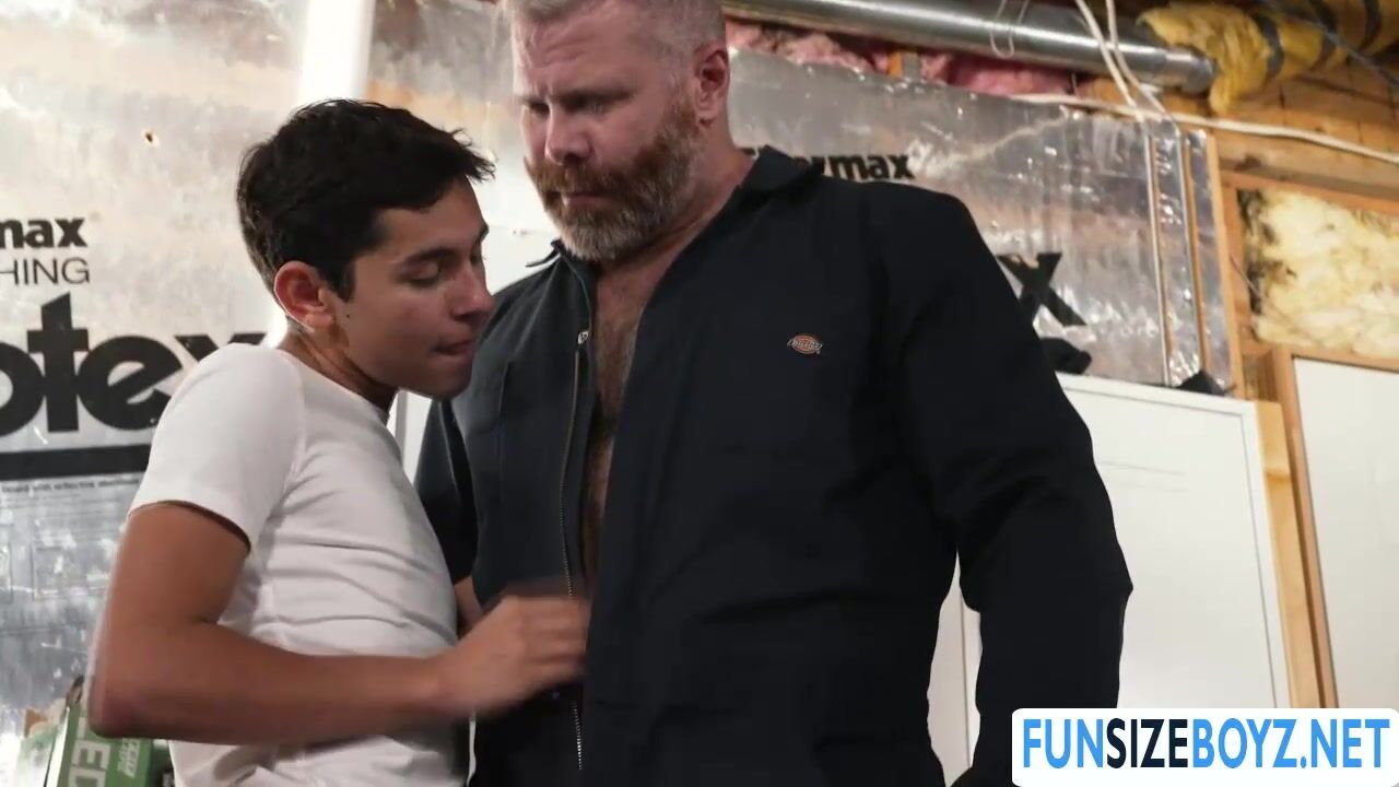 A muscle hunk handyman plumber Cain Marko with a sweet twink Damien in the work area whom DILF and made no attempt to hide his attraction and desire. They start kissing then unbutton his extremely bigcock to deepthroat blowjob before he anal barebacks his tight ass.