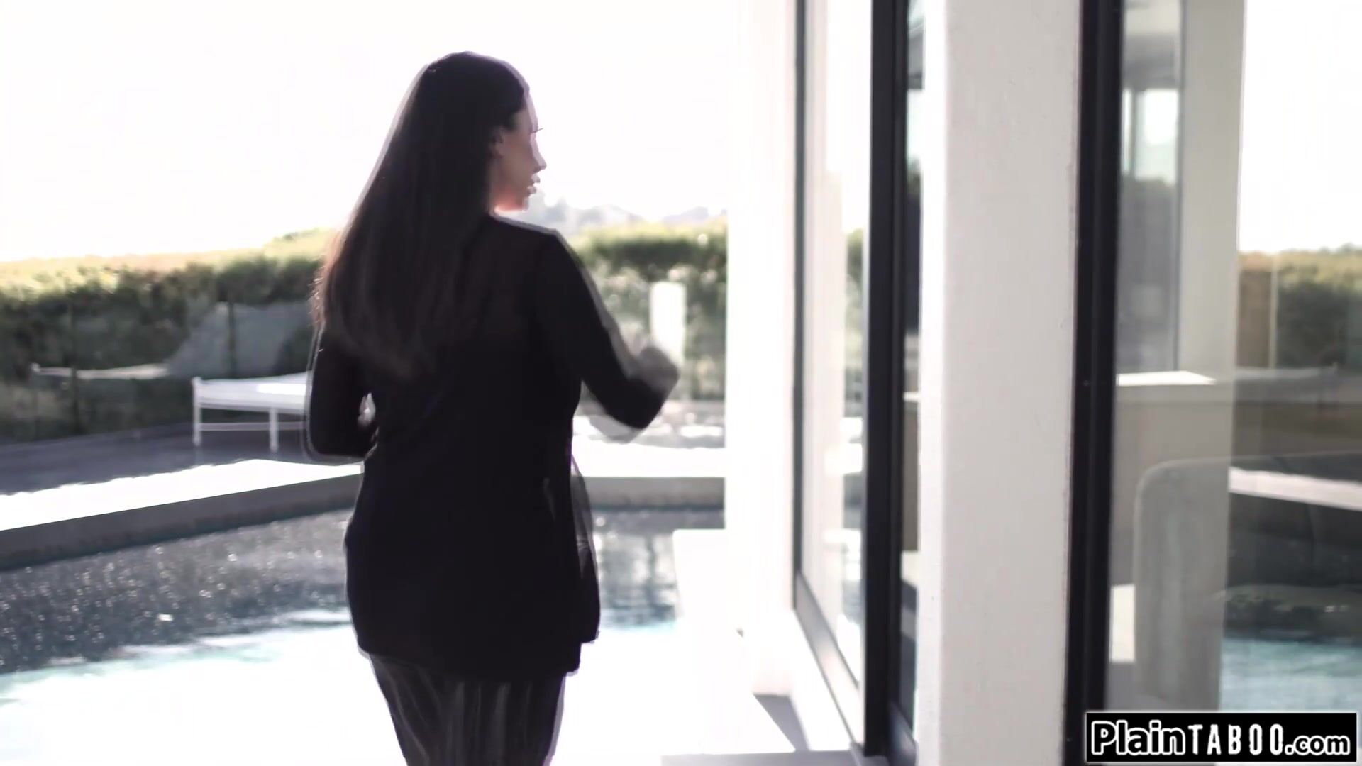 Busty milf wants to get back on her cheating wife and decides to have sex with her teen neighbor while she is watching.With her wife at the other side the brunette big tits cougar kisses him and lets him fuck her.She deepthroats and rides his cock