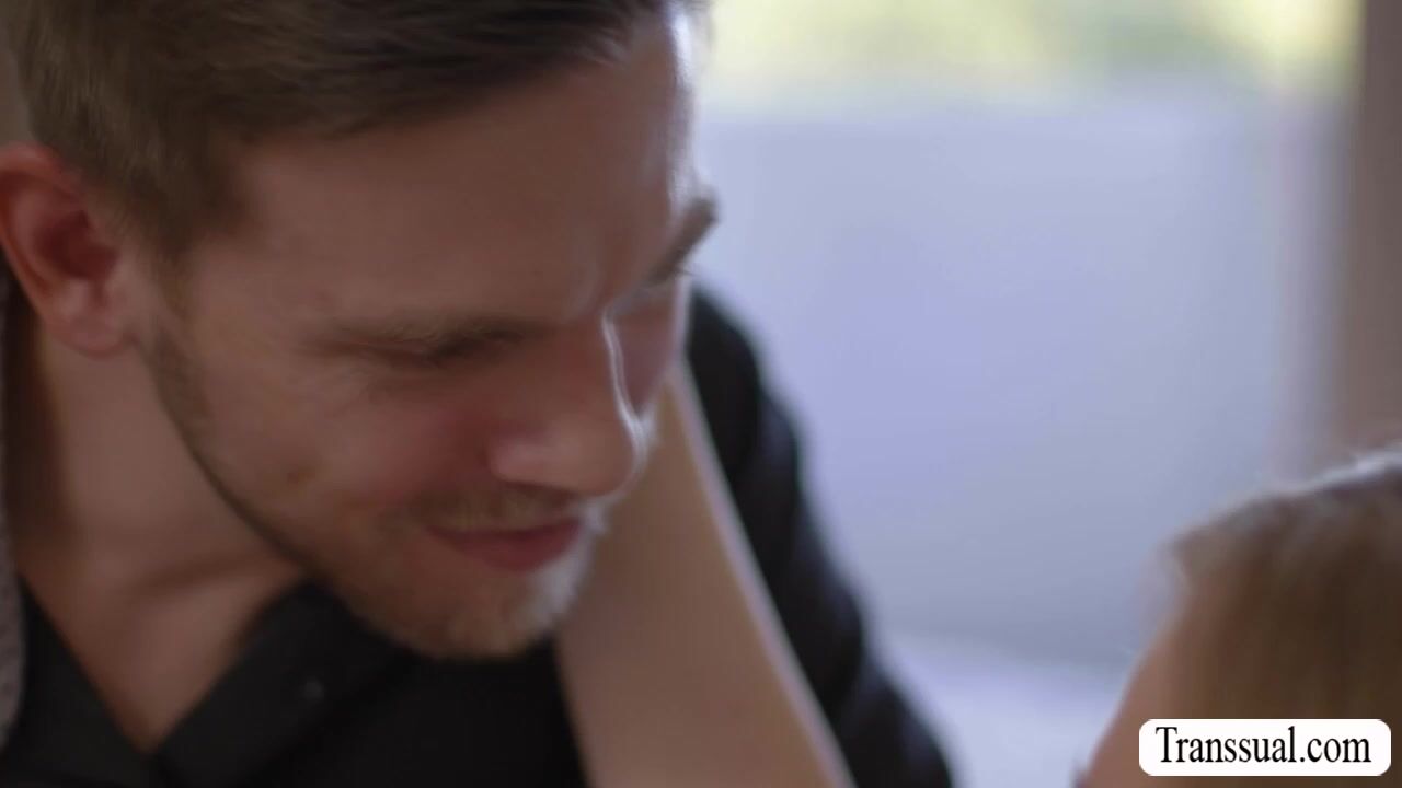 Super tight TS wife is on the bed and her husband arrived so horny.They start kissing each other on her bed and then she throats his hard big cock passionately.In return,her husband bareback fucks her tight ass so deep and hard.