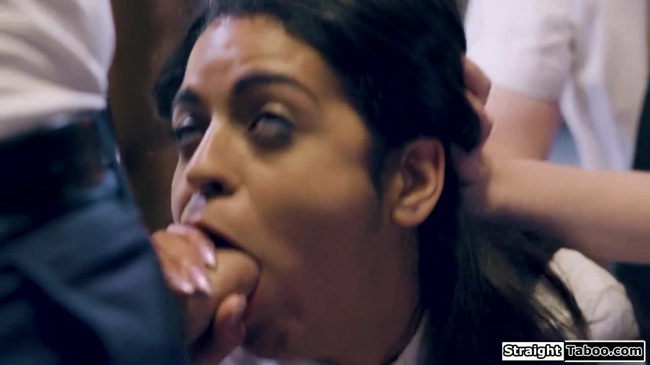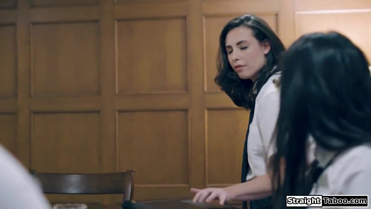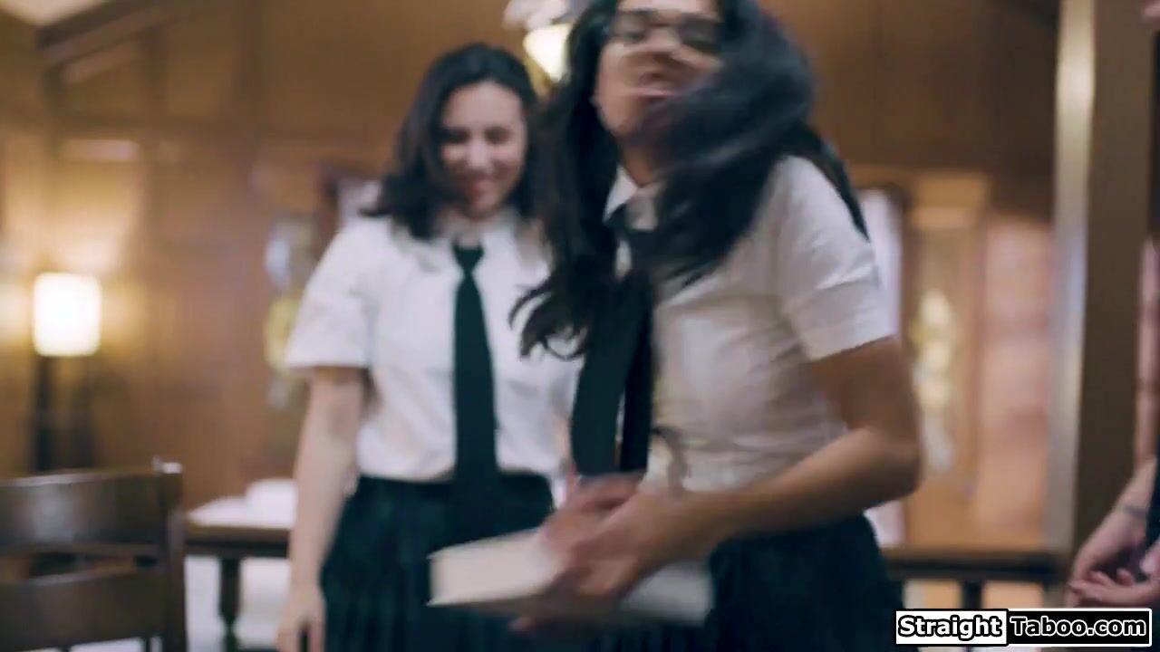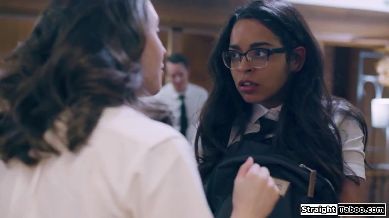 Stepsister and stepbrother make a virgin classmate join em in 3some.The busty latina student deepthroats his big cock while facefucked.The big tits brunette licks the petite babe shaved pussy and is fucked as the small tits girl masturbates her cunt