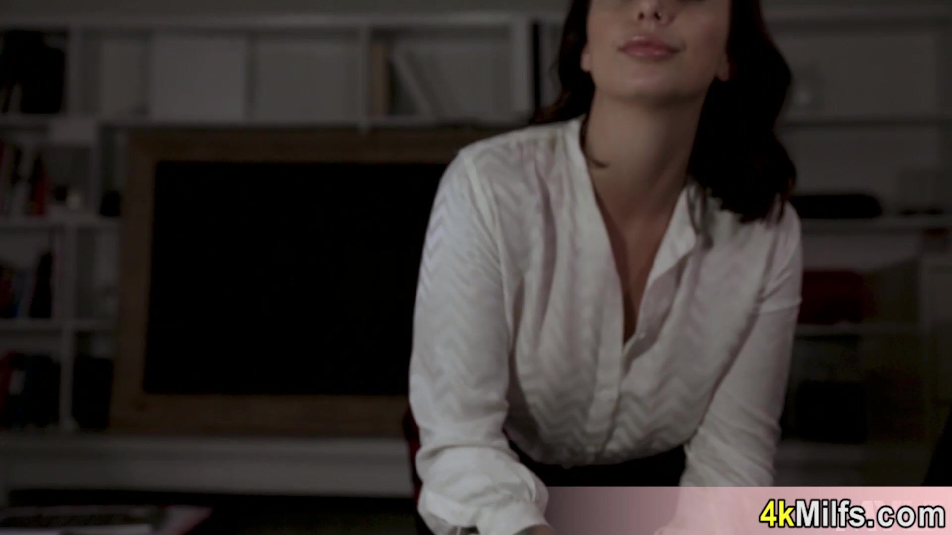 Hot brunette MILF boss Ivy Lebelle with big boobs is working late in the office and she needs a big dick so she orders her employee to satisfy her She takes his cock and after a blowjob he is fucking her hungry pussy hard