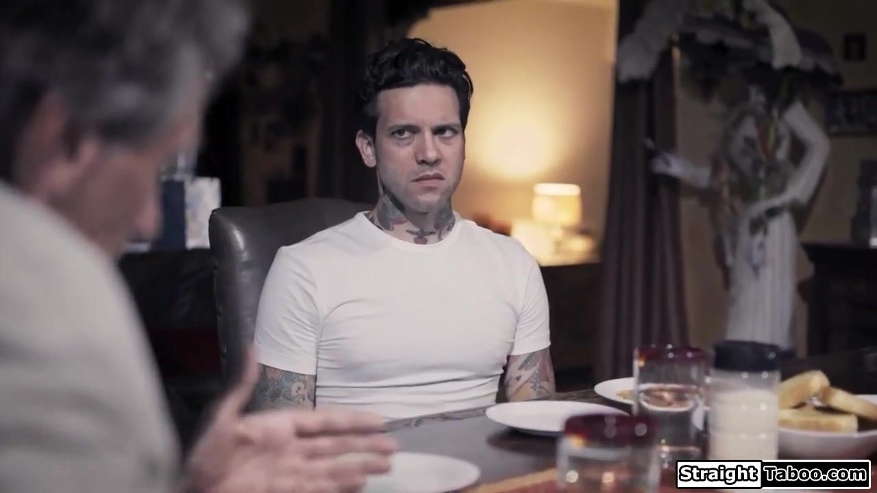 Stepbrother catches stepdad and stepsister fucking and the small tits babe asks to have a 3some.The brunette deepthroats their big dicks and the older man facefucks stepdaughter.He bangs her rough as he masturbates her hairy pussy and she gives a bj