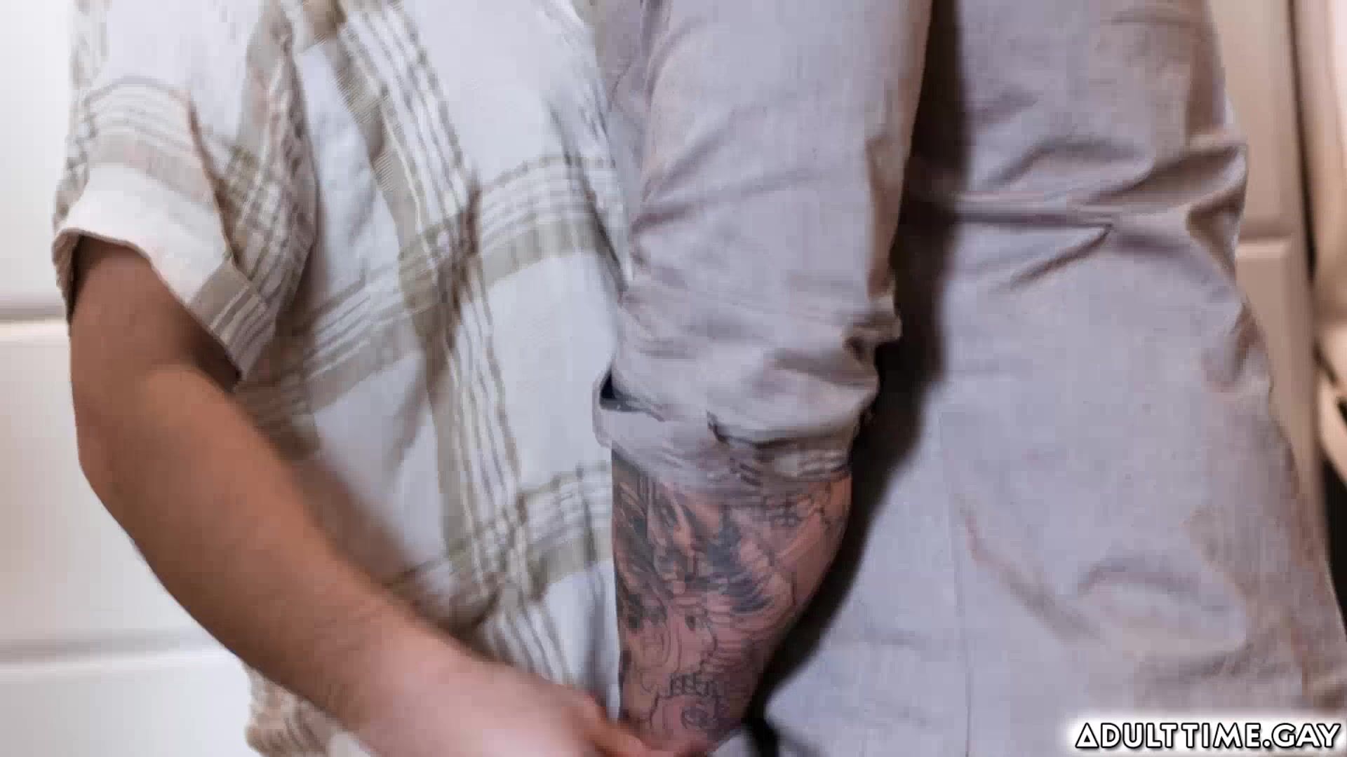 Brock Kniles, and his gay in-law, Devin Franco, are tidying a walk-in closet. As they work together and bond over and got horny and wish to experience creampie so he offers to let Brock creampie HIM instead to get what he wants! They have sneaky sex in the closet, almost getting caught by the wife