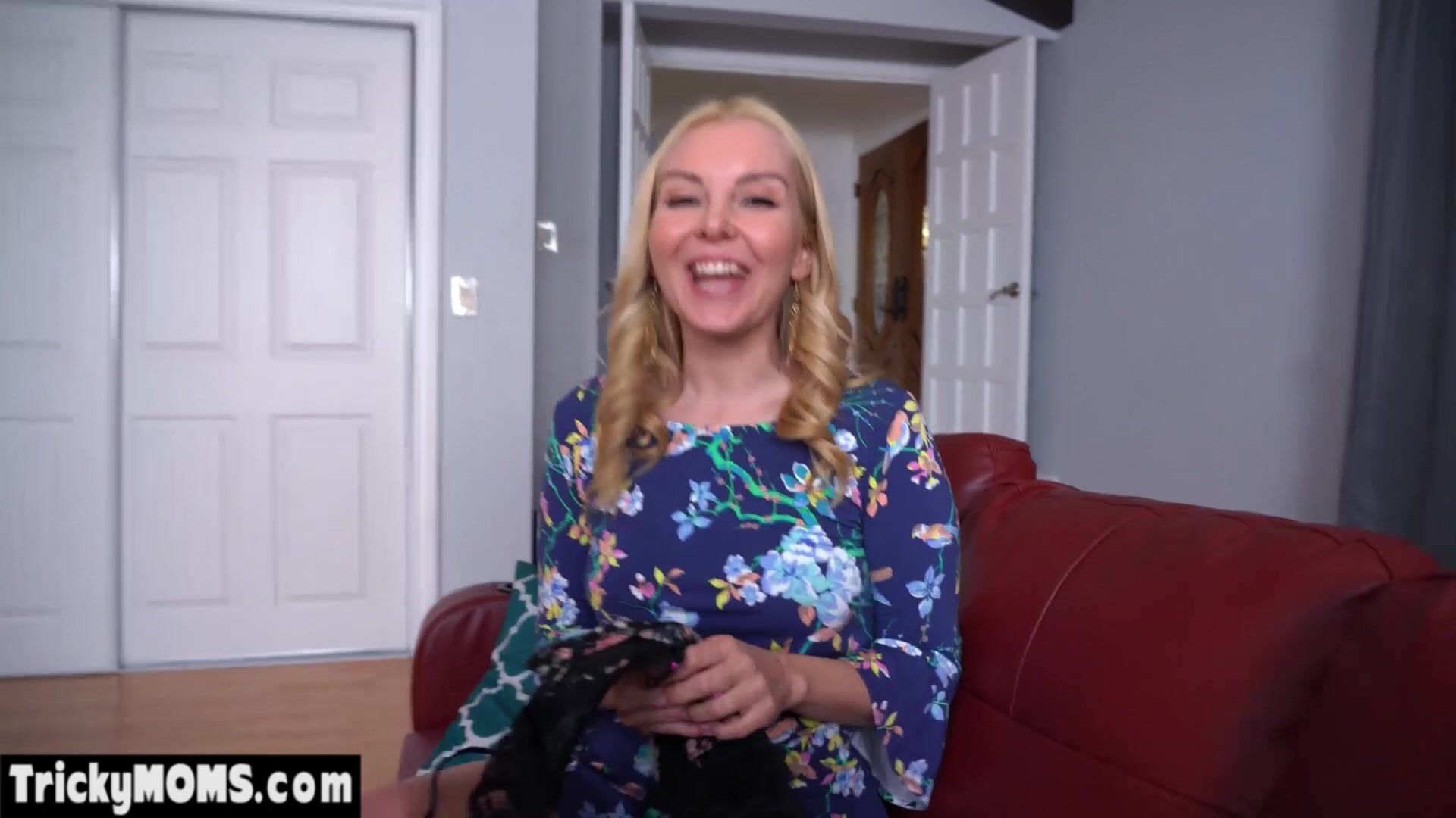 Hot blonde MILF stepmom sliding on stepsons big cock