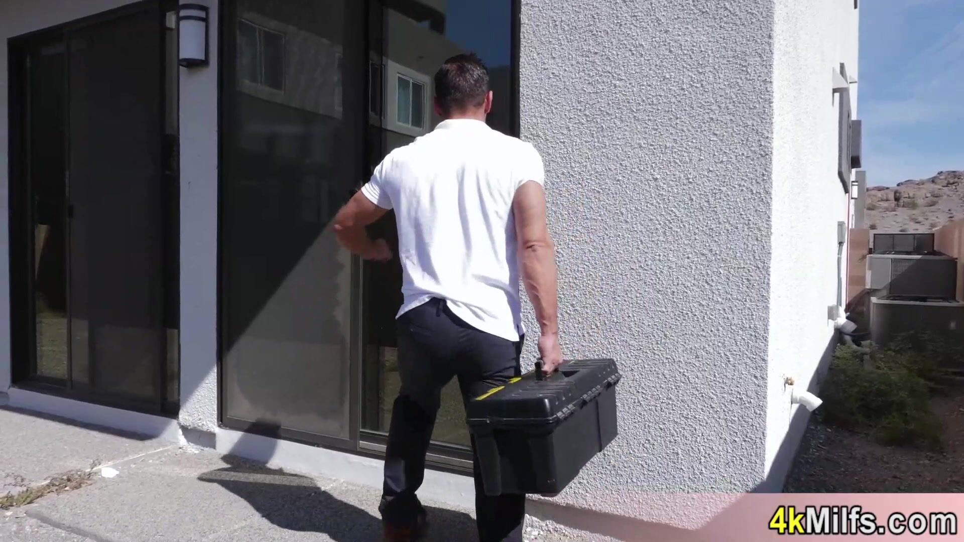 Skinny brunette anal lover MILF Anissa Kate with big boobs calls a repairman to fix her air conditioner then the grateful slut takes his big cock and lets him to fuck her face and her bubble butt