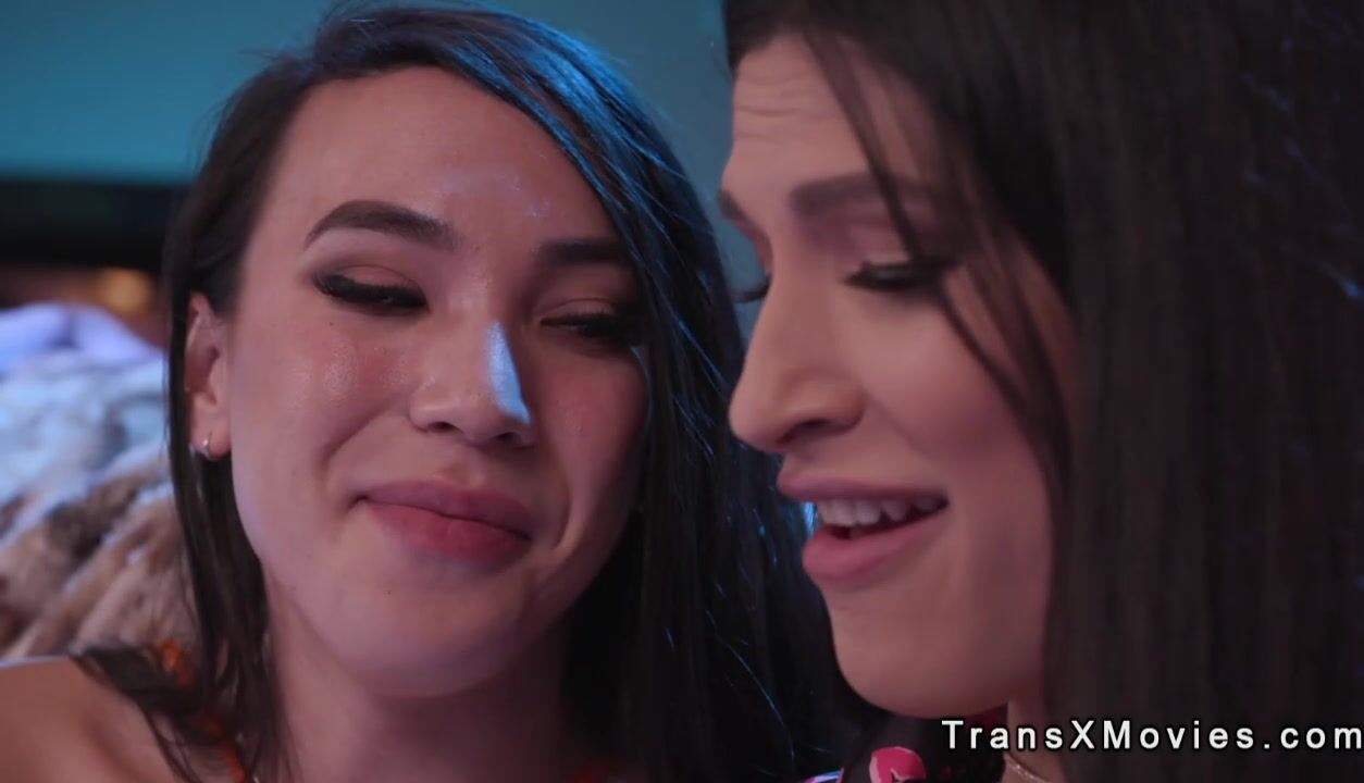 After movie night and popcorns hot brunette trans Kasey Kei grabs for dick and kisses Zariah Aura then fucks and wanks her dick and anal fucks on the sofa in living room