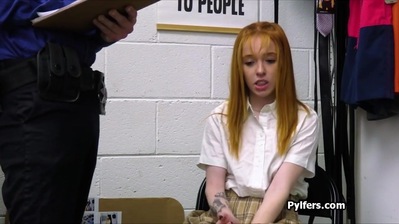 She gets escorted into the backroom. First questioning then strip search happens.. and the officer plans evidence in her tight pussy during that!