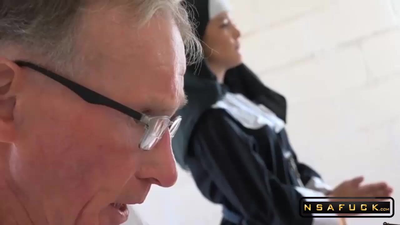 Horny Teen Nun Strips and Fucks an old Man in the Confessional