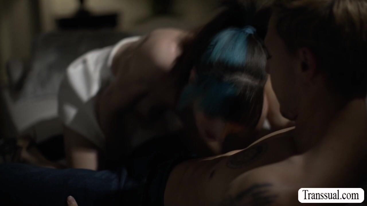 Shemale Stepmom Melanie Brooks throats her stepson big cock on the couch passionately.In return,she lets her stepson lick her tight ass first to makes it wet before he bareback fucks it so deep and fucking hard.