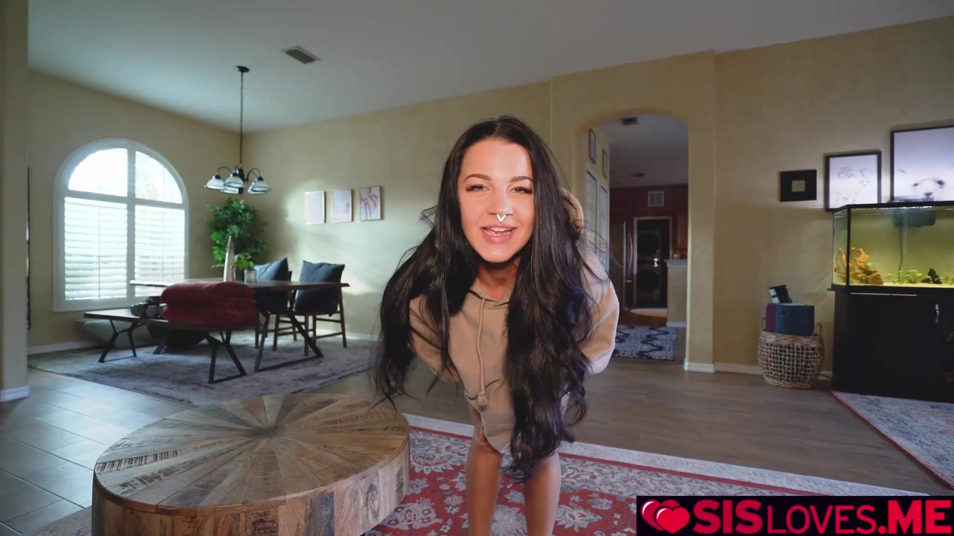 Sexy stepsister Evelin Stone wears only a sweatshirt and she's feeling horny. She takes Kale's huge throbbing boner sucking it and playing with her tongue then riding it to her heart's content until she gets her climax.