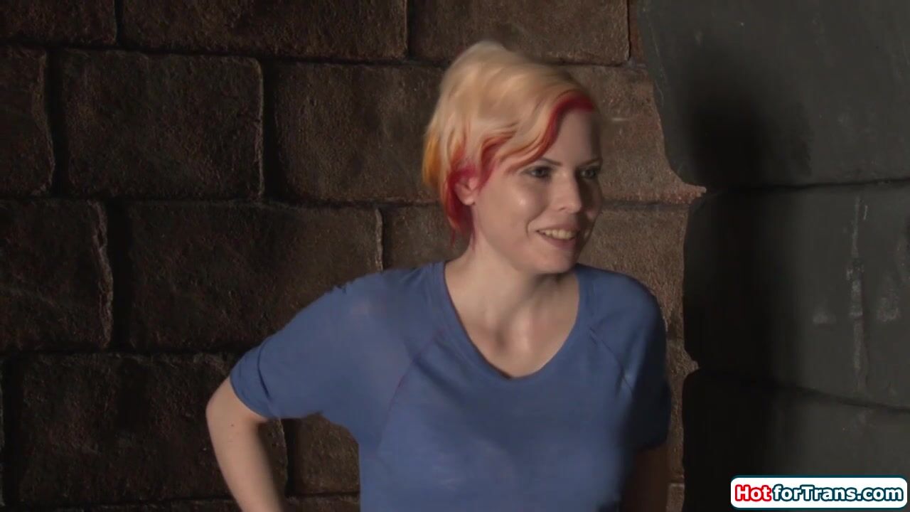 Surprise you just sucked my tgirl dick through the gloryhole.Oh come on I see you staring in lust at my big trans tits and want to have your first shemale fuck.So masturbate your pussy while I facefuck you with my tranny boner before I bang you
