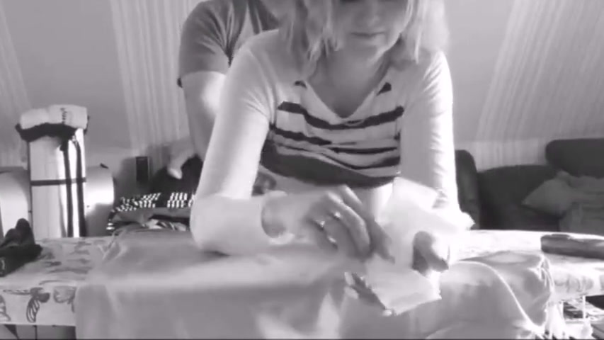 German Milf fucked when ironing the laundry