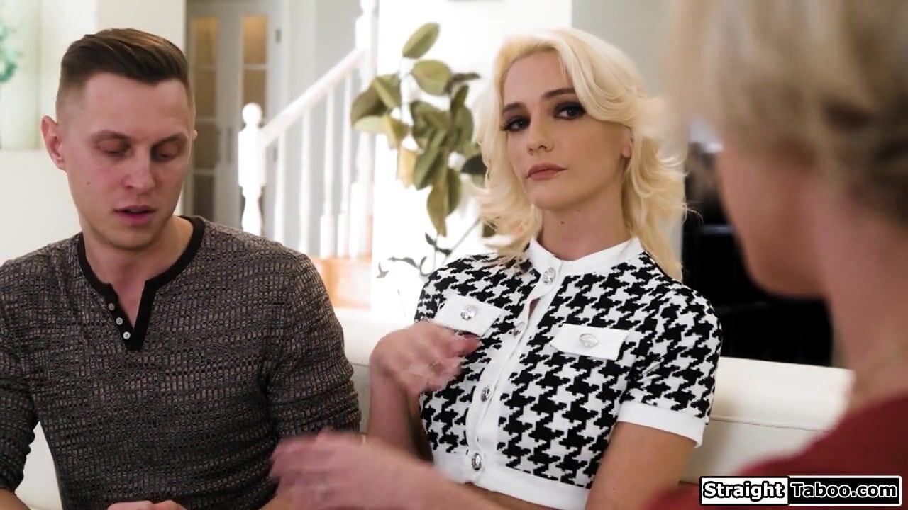 Stepson asks mature stepmom to help him cum to impregnate his wife.The older woman gives him a handjob and the babe deepthroats his big cock.The busty girl gets her shaved pussy fucked as he sucks the milfs big tits.The blonde rides his dick in 3some