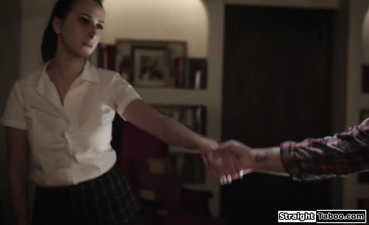 Teen student kisses her bf and he asks the virgin girl to fuck.He sucks her big tits and gives her oral sex.The guy fingers her hairy pussy and the busty uniformed babe deepthroats his big cock as she gives a handjob.Then the 19yo brunette is fucked