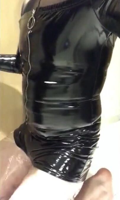 Playing in my black pvc body, nylons and plastic wrap II