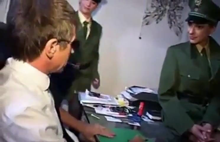 Two german police hotties in uniform taking care of a lucky boss.