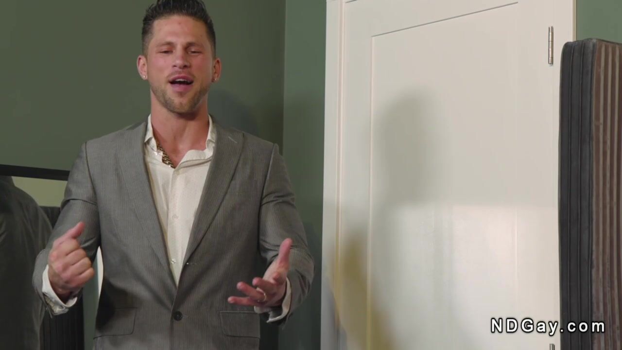 Graduated twink stepson Nick Floyd sucks huge dick to gay stepdad in suit Roman Todd then takes big dick up his tight ass hole on the sofa in living room in family taboo roleplay