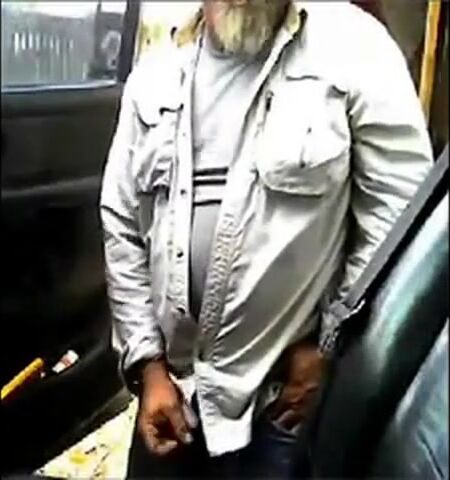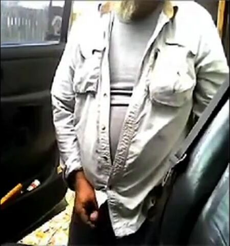 Mature beard dad jerks his cock by his truck outside
