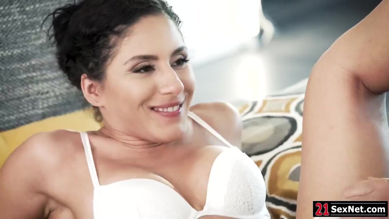 Liv Revamped wearing white lingerie is seducing her guy Ian Scott.The latina starts kissing him first before giving blowjob.Her guy removes her panties and licks her clit.She rides on him getting her pussy fucked while he grabs her small tits.
