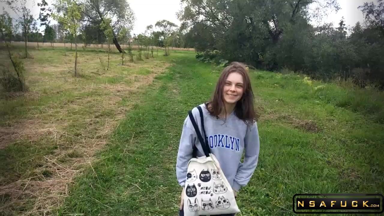 Russian Slut make Blowjob Outdoor after University