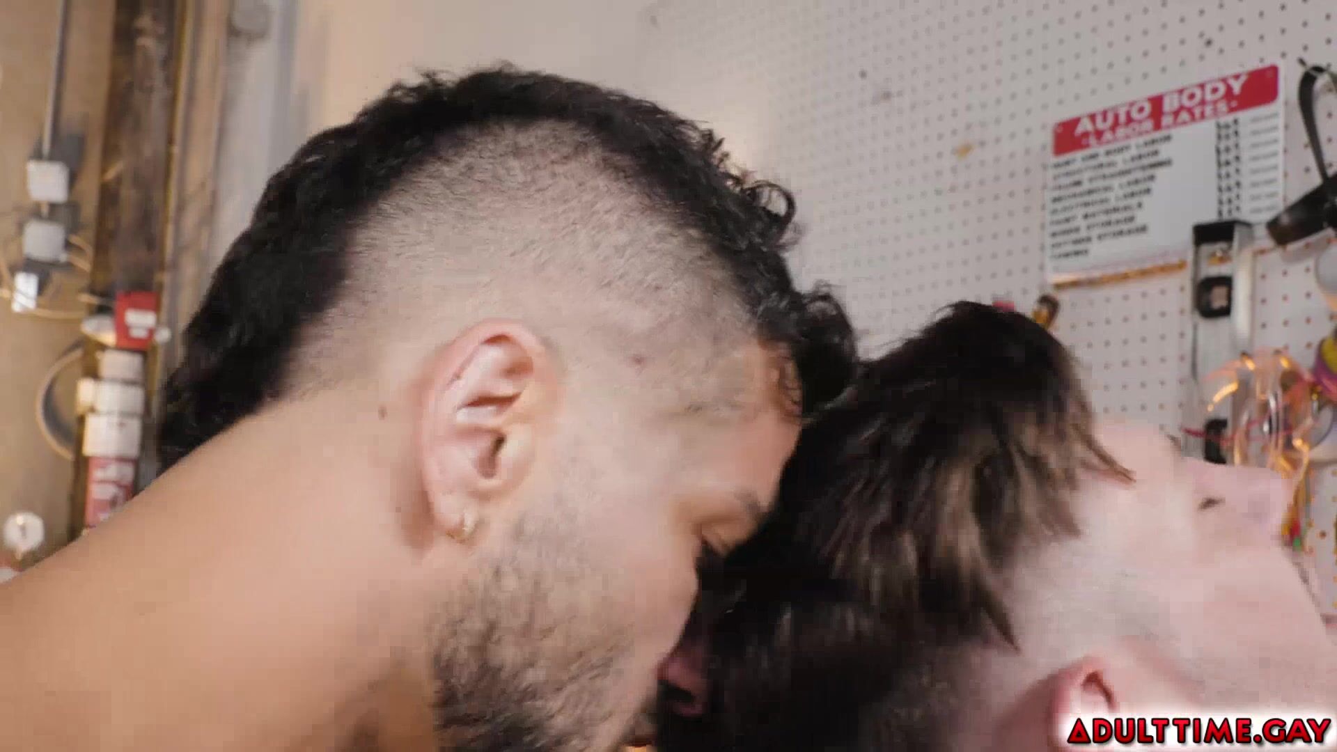 Hunk mechanics Adam Ramzi and Jordan Starr are greasy and sweaty from working on repairing a car, they both develop some attraction while working together for months. Soon they get playful with each other kissing passionately and fucking wildly in the garage.