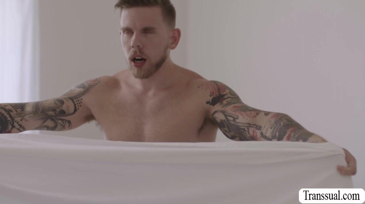 Shemale babysitter is taking a shower and her boss saw her naked.After that,she takes the laundry and she gets her ass fucked while her head is inside the washing machine.Instead of getting mad,she throats boss cock and rides it after.