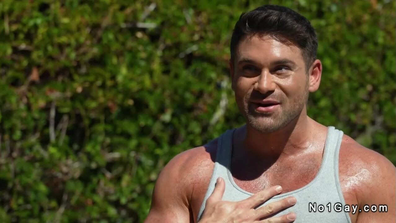 Alone in backyard gardener Beau Butler and pool man Sean Xavier are meeting and they quickly jumping on each other and sucking and anal fucking in interracial gay anal action
