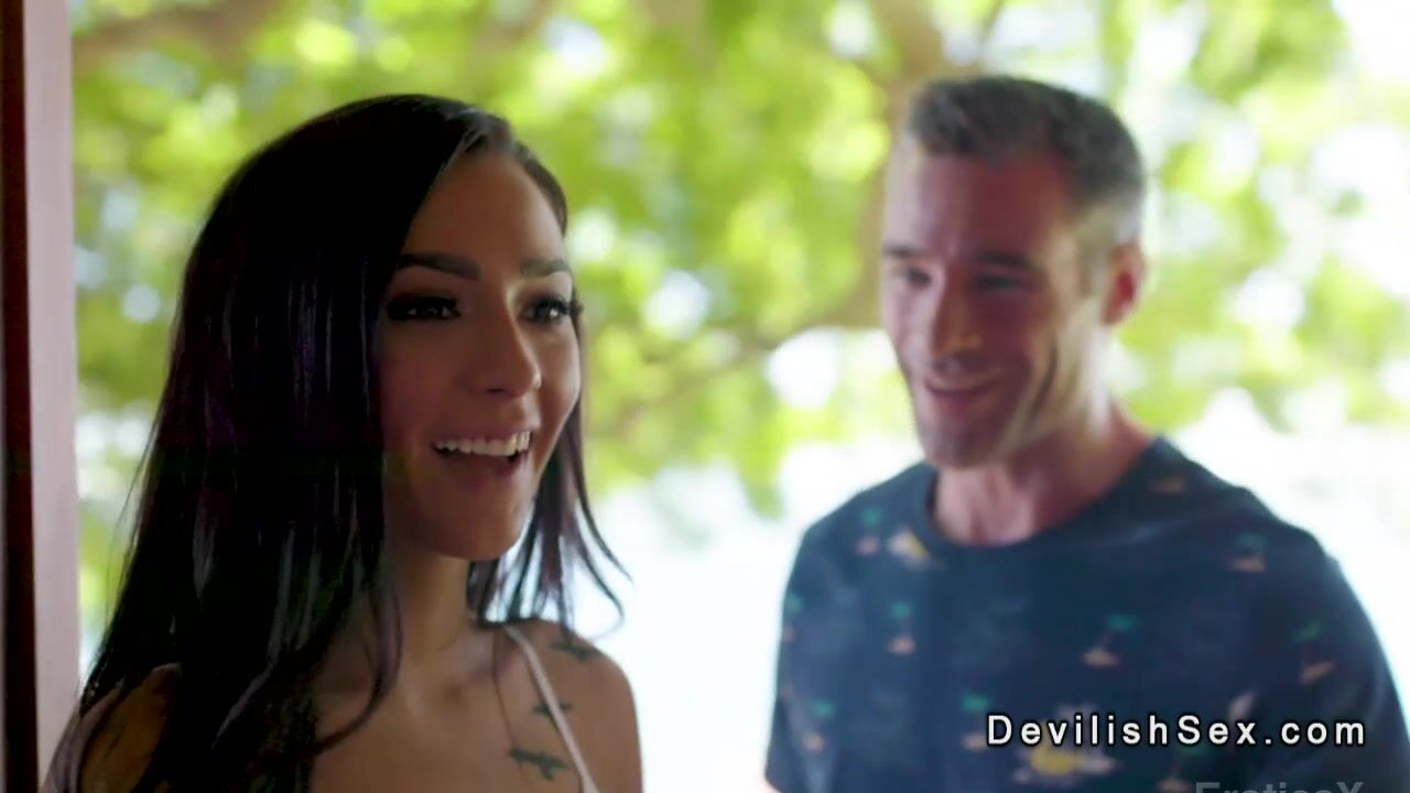 Hot brunette married babe Jaye Summers met handsome stranger Charles Dera at beach resort and he licked and fucked her in a tree house in her hairy pussy
