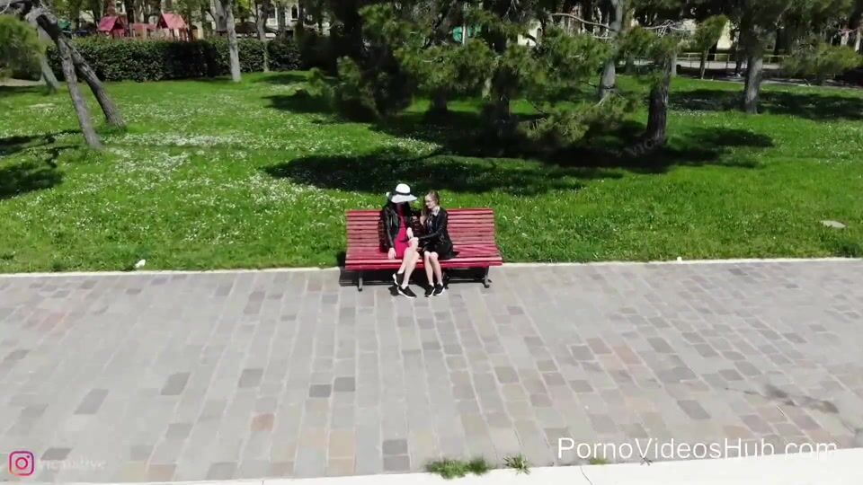 A dirty mature nympho fondles a hot teeny babe in public, then takes her home
