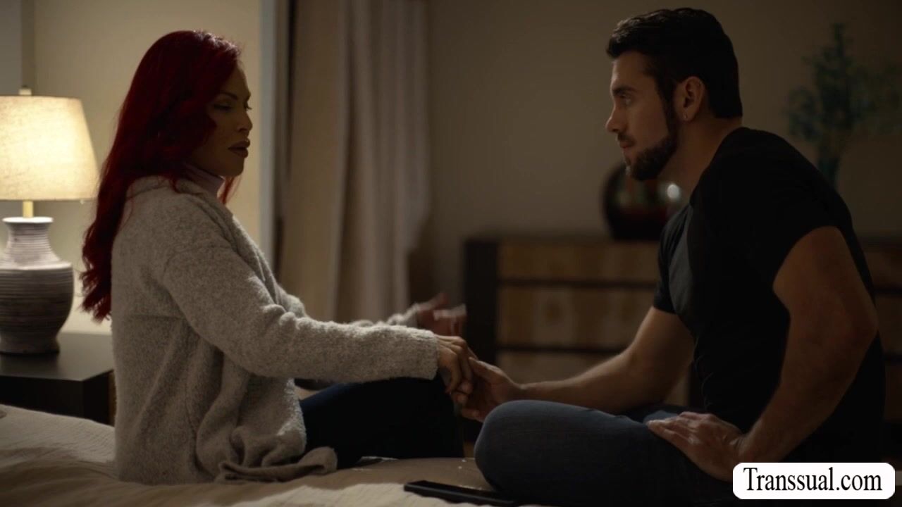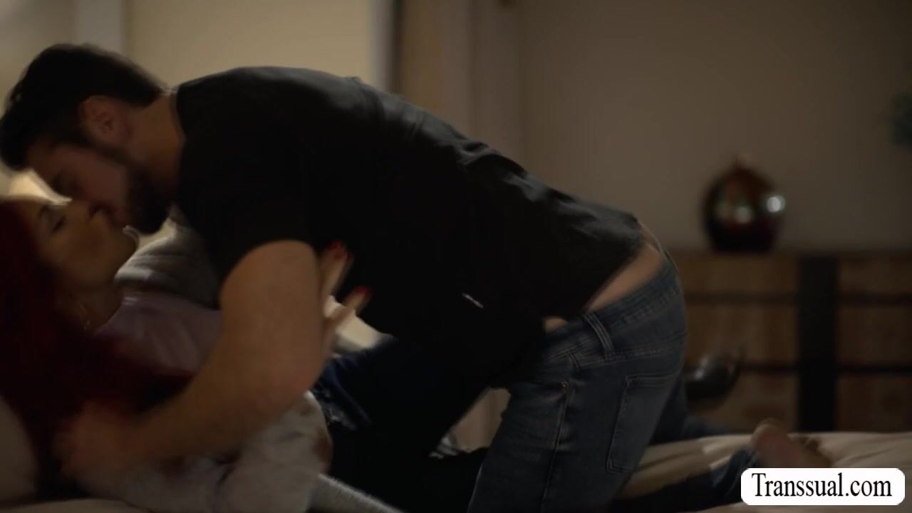 Redhead TS stepmom gives pleasure to her handsome stepson.She starts sucking his hard big cock passionately and in return,she lets her stepson bareback fuck her wet tight ass so deep and fucking hard.