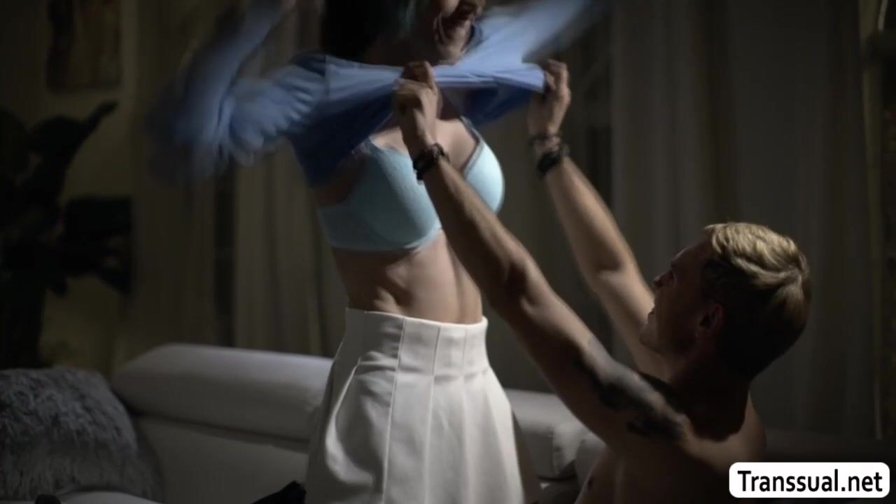 MILF shemale stepmom is kissing her handsome stepson on her bed.After that,she throats his hard big cock passionately and in return,she lets her stepson bareback fuck her tight wet ass so deep and fucking hard.