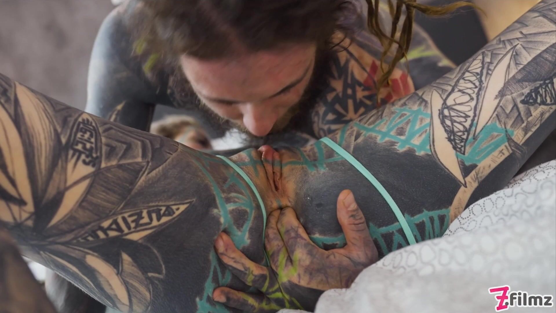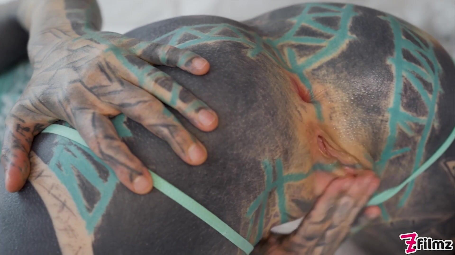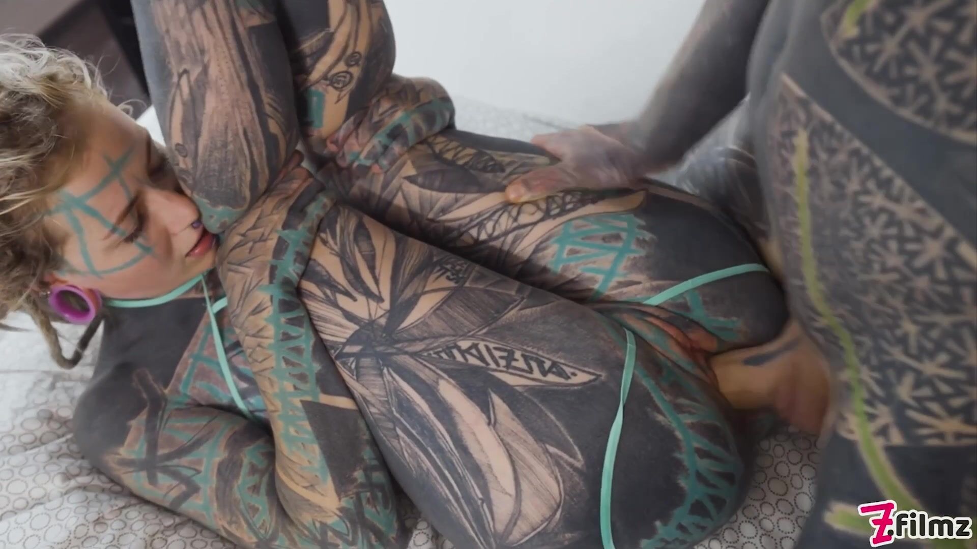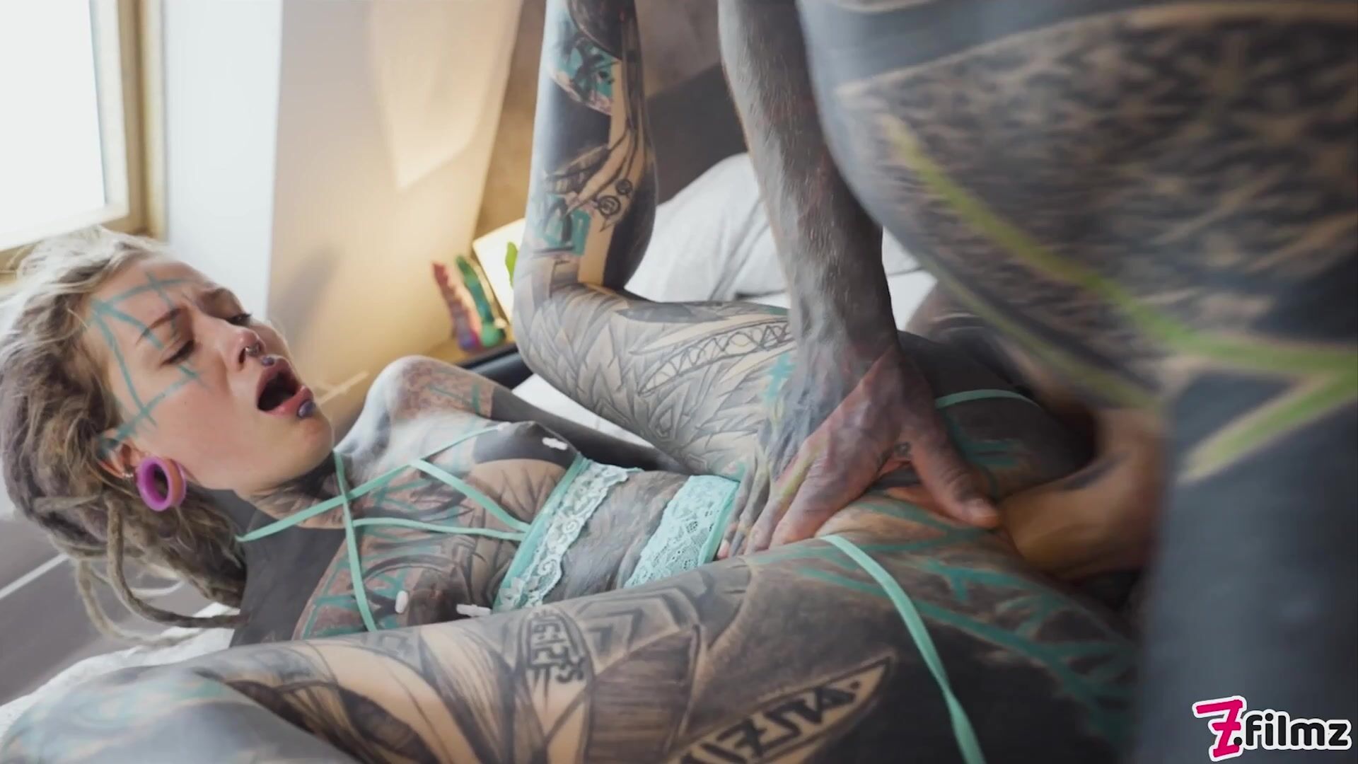 Our heavily tattooed queen Anuskatzz gets fucked balls deep in her cunt and her tight little ass by Nikolaz's big, meaty cock!