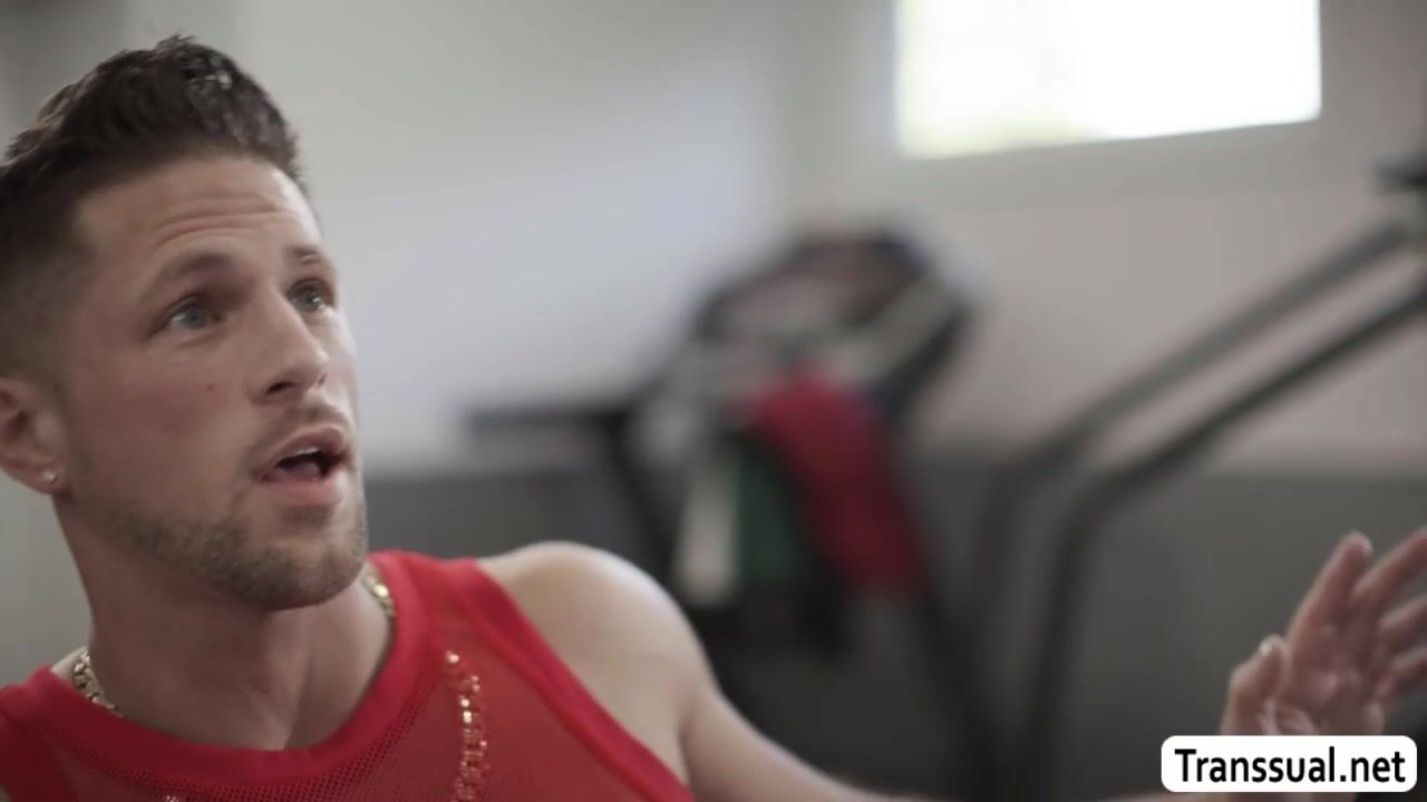 Sexy ladyboy sucks and rides the cock of their gym installer