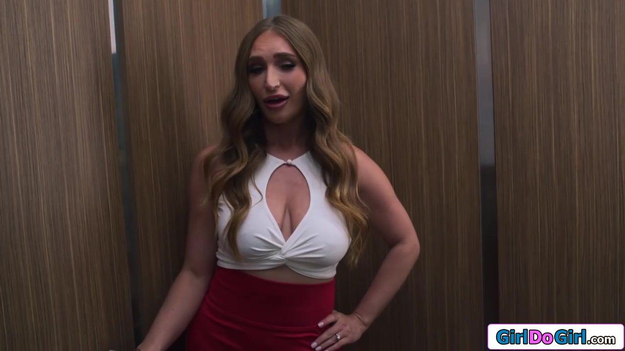 Alone in the elevator at work the busty blonde makes her move on her big tits latin coworker.The lesbians kiss and the latina gets her shaved pussy fingered and licked.The tattooed blonde gets her ass rimmed in return and strapon fucks her crush