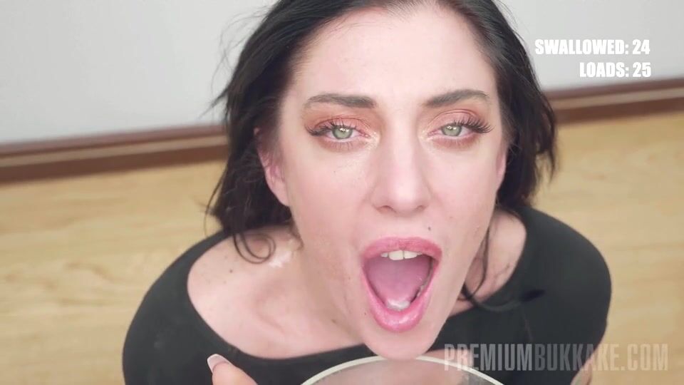 Cute Green Eyes Brunette Swallows 42 Cumshots With Masive Bukkake