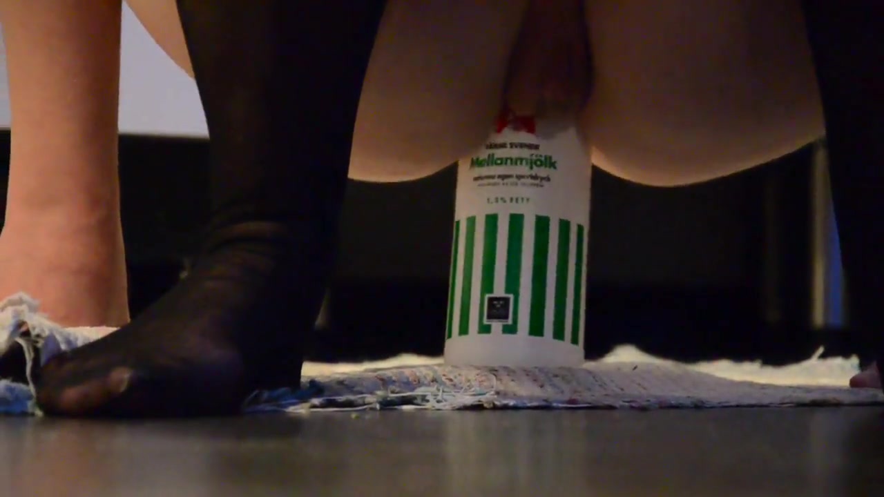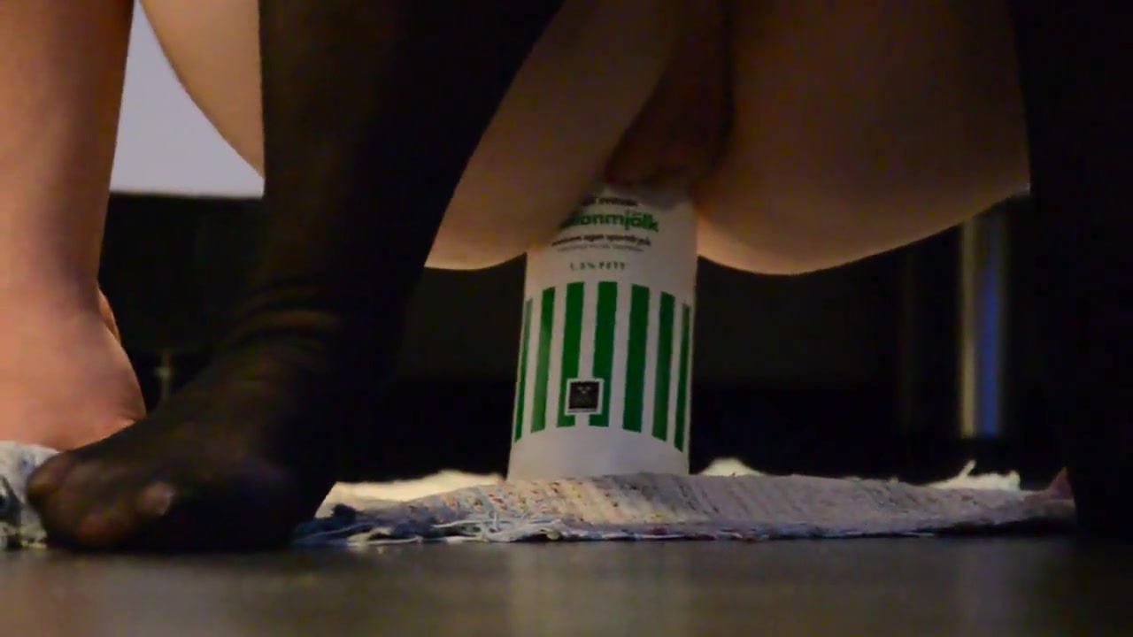 wife rides a bottle with her ass