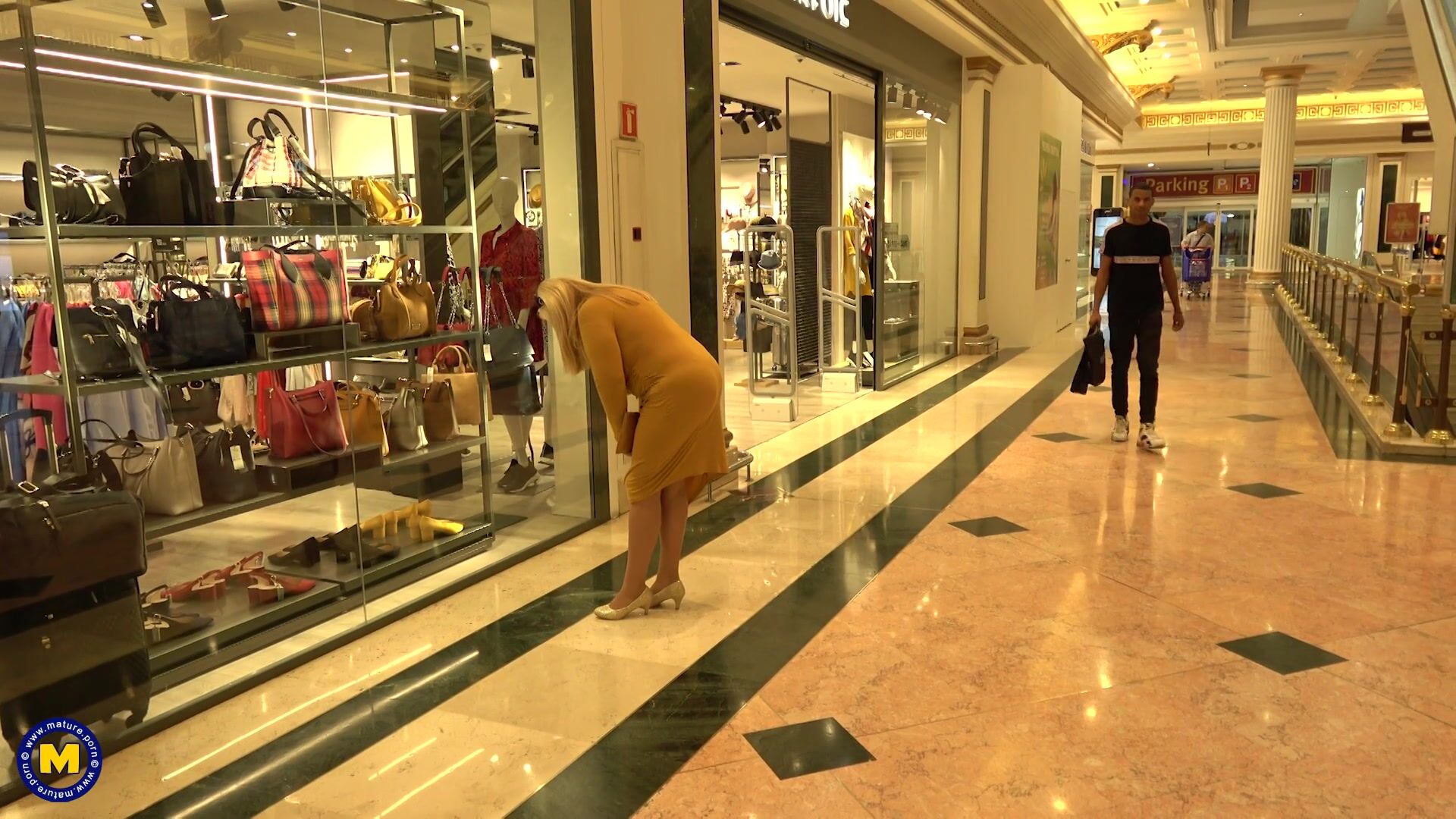 Sexy big tits mature lesbians in the shopping mall
