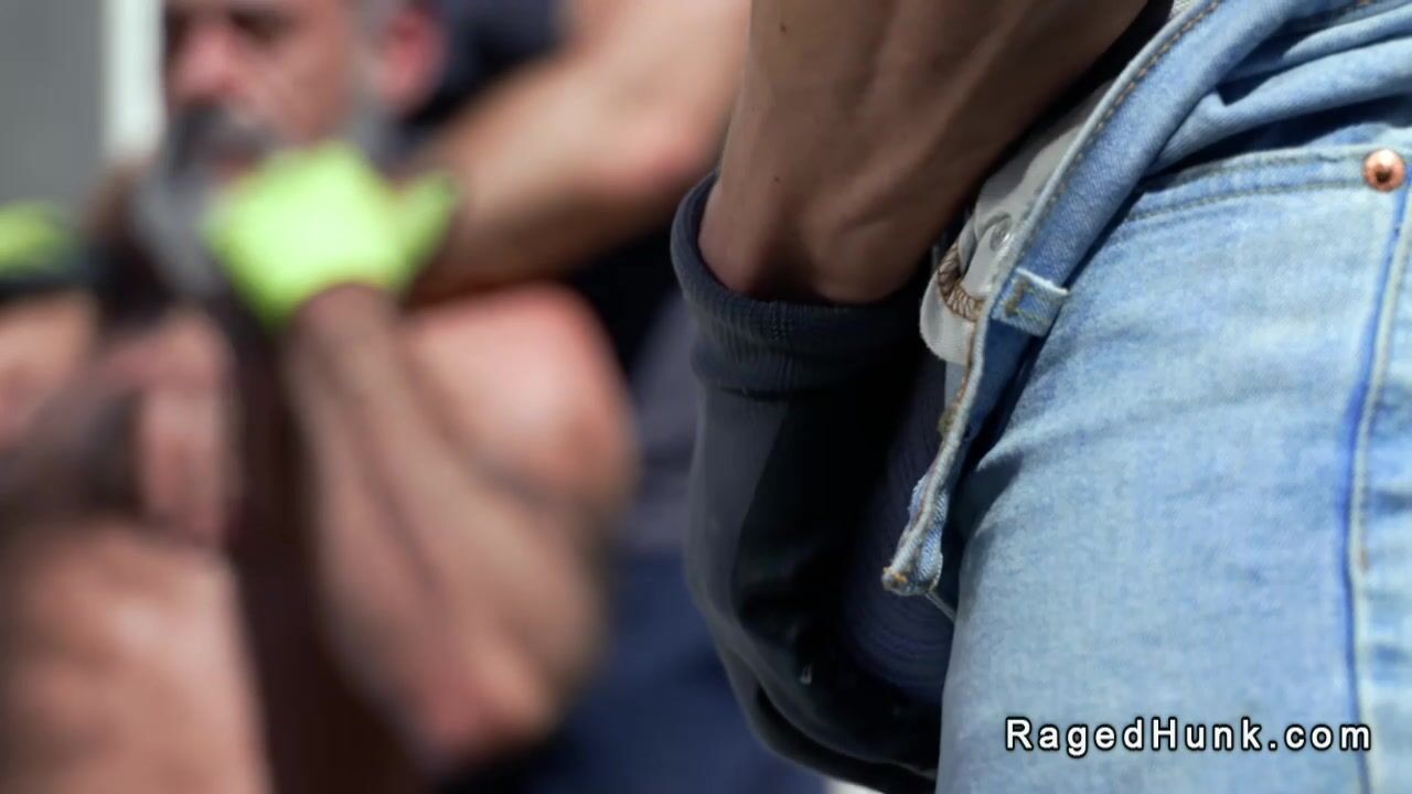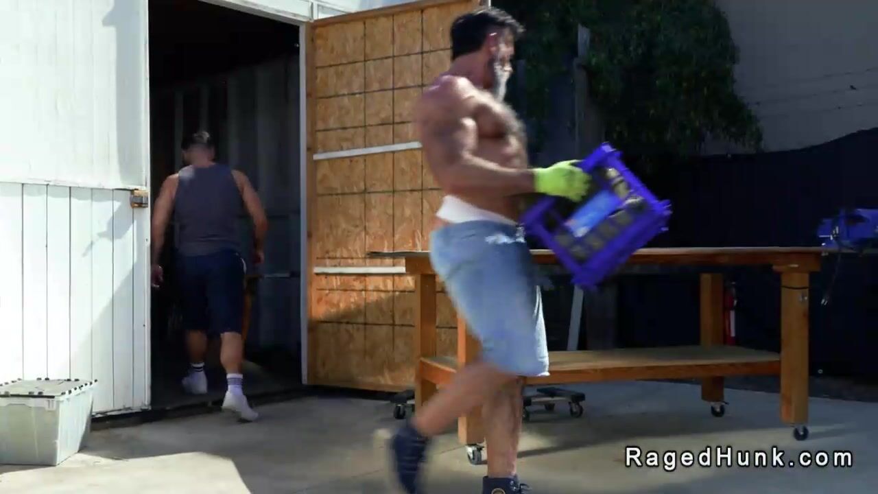 Three muscle gays Beau Butler and Lawson James and Morgxn Thicke are supposed to emptying out storage unit but horny men anal fuck and suck and rimjob in public