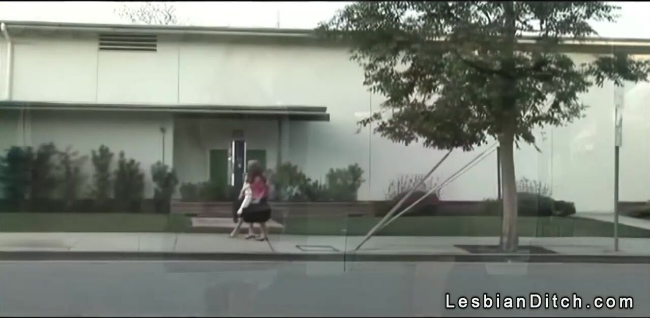 Two hot lesbian business women Emilianna and Kelly Kline have a coffee outdoors then in bedroom they are cudle and worship panties and lick pussies in sensual action