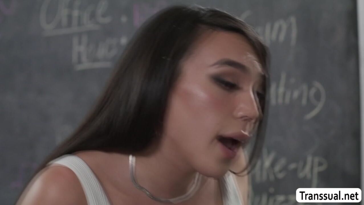 Mad TS stepdaughter gets mad and rides teacher stepdads cock