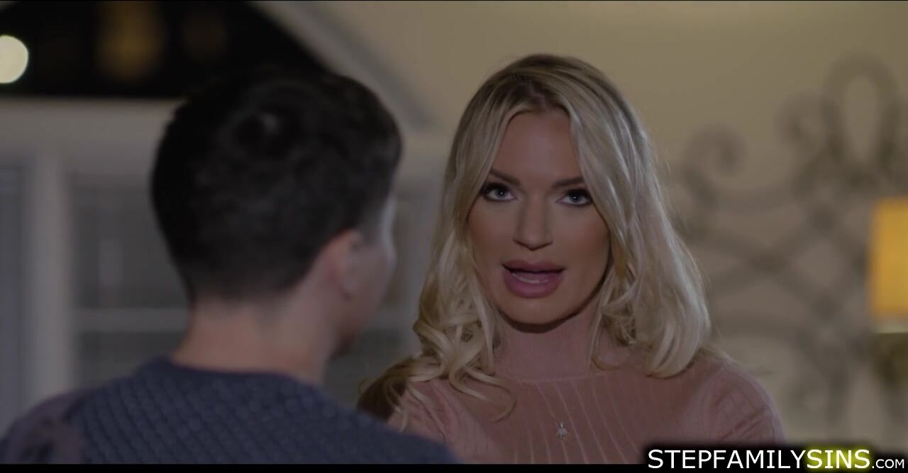 Blonde milf is giving her hard working stepson in laws bro a surprise.She relieves his stress by giving him sloppy blowjob.The guy grabs her big tits then goes down licking her hairy pussy.The cougar lies on the couch while he is fucking her hard