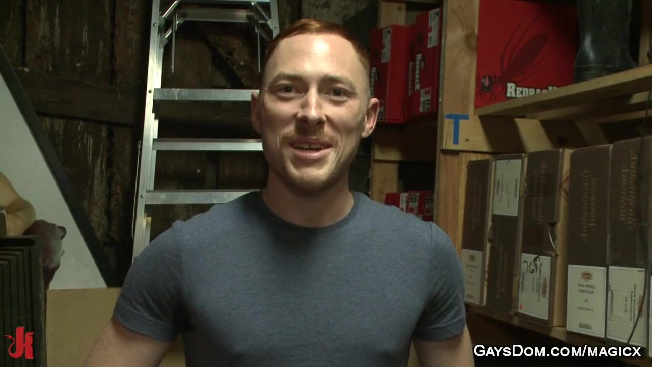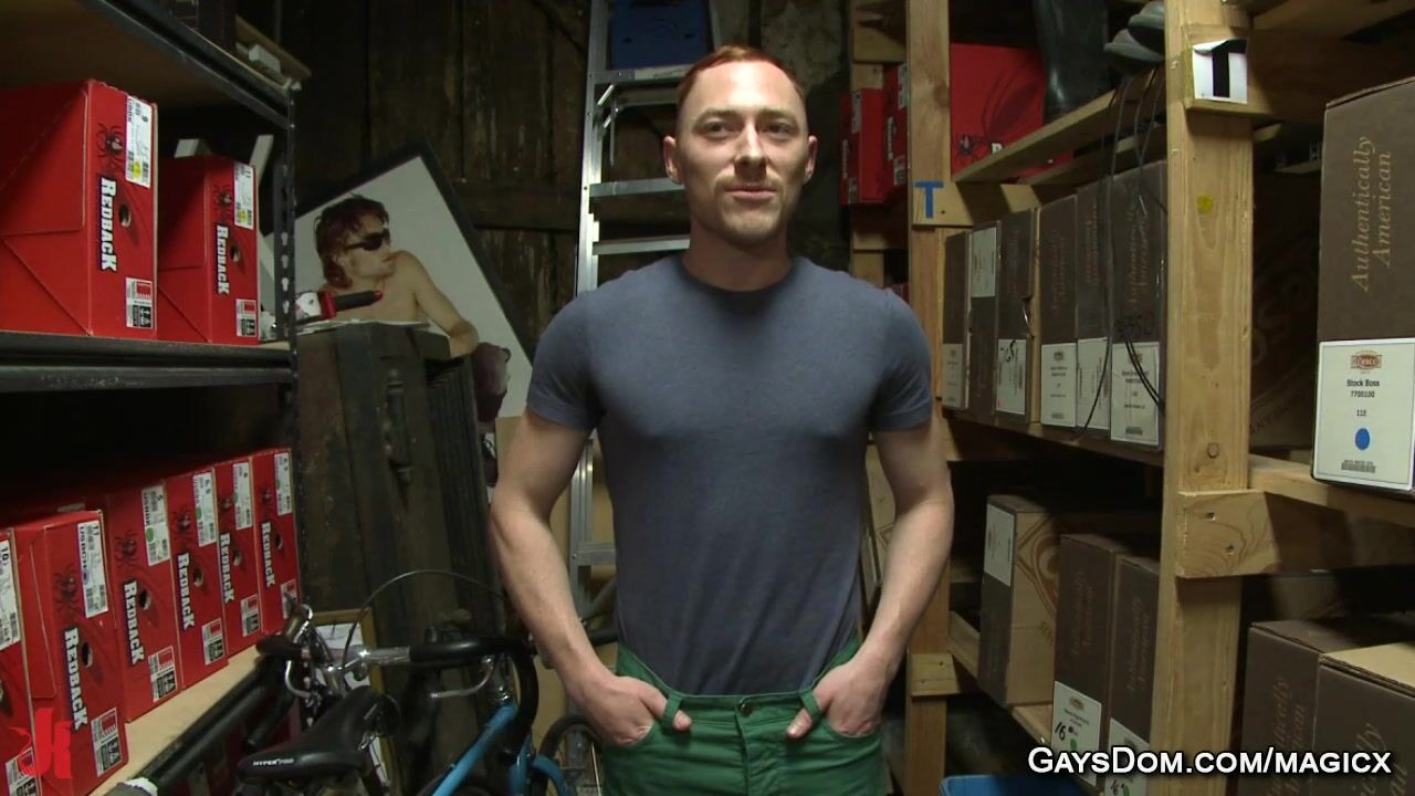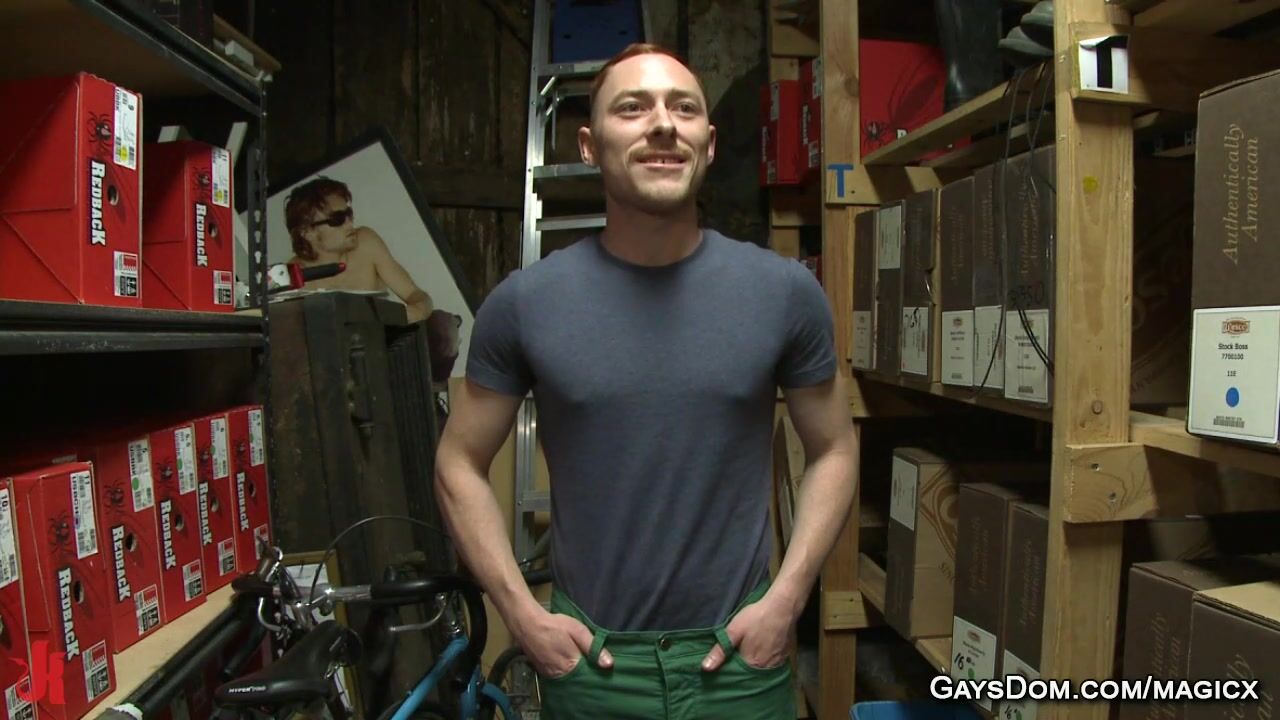 Lazy ginger gay employee Damien Moreau is tied up by his coworkers Connor Maguire and Bryan Cavallo and gag to everyone who comes up to grope him then rough flog and fuck him outdoors in public