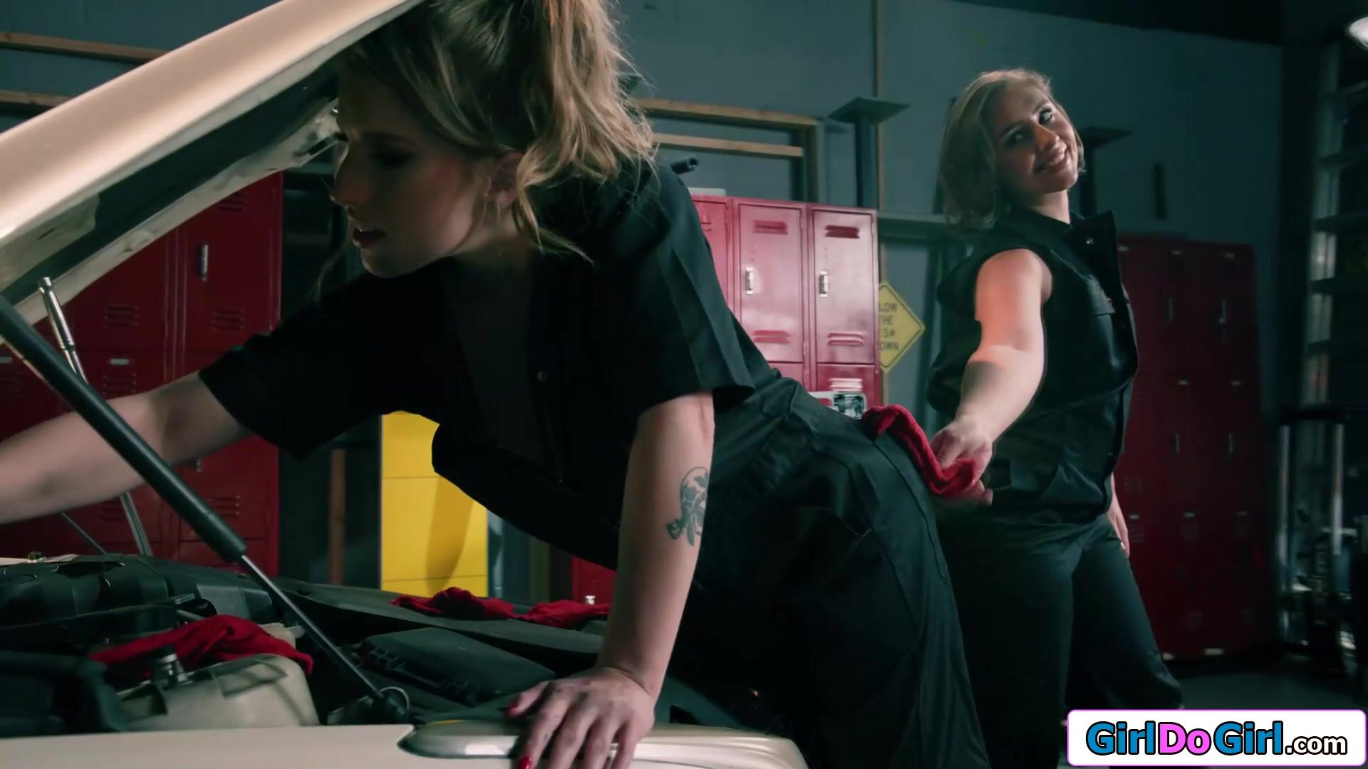 A businesspartner requires regular maintenance to keep things ticking.My small tits partner kisses me and loves to suck on my big boobs.She licks my pussy and doggystyle strapon fucks me.I shove a dildo up her snatch and facesit on the hood of a car