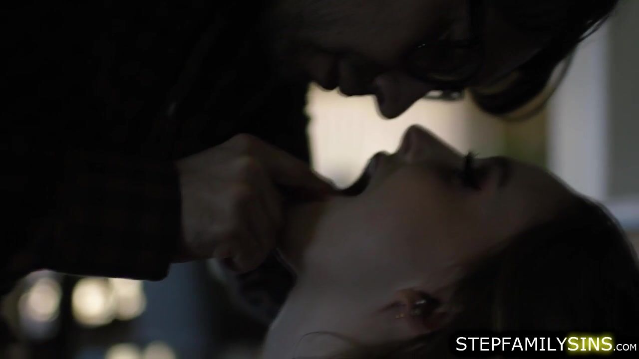 Brunette stepdaughter Laney Grey begs stepdad to let her stay after breaking house rules.The guy makes her suck his big cock.He opens her mouth and spits on it.Laney rides on him,keeps her bubble butt bouncing while her hairy pussy is getting fucked