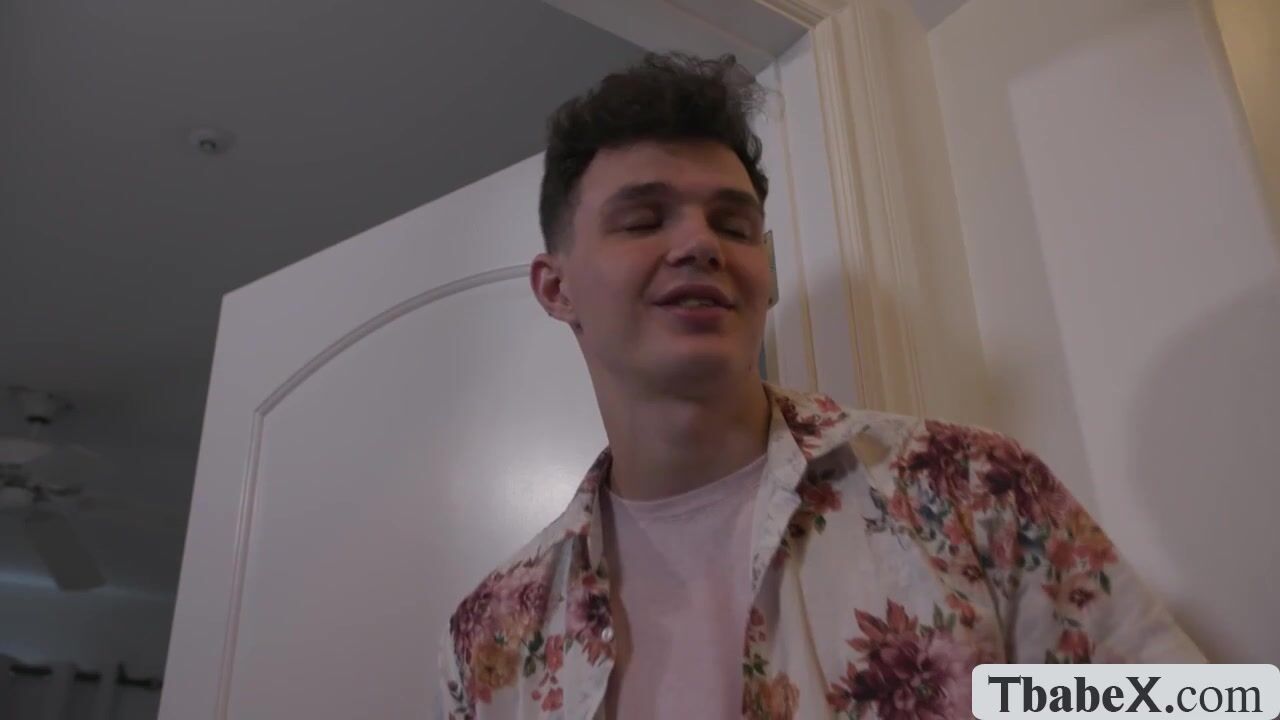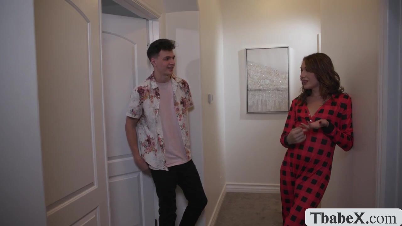 Ladyboy Jayne Calloway invites the stepbro of her friend into her room and they start kissing each other on the bed.After that,she throats his hard big cock passionately and in return,the guy licks her ass first before he bareback fucks it.