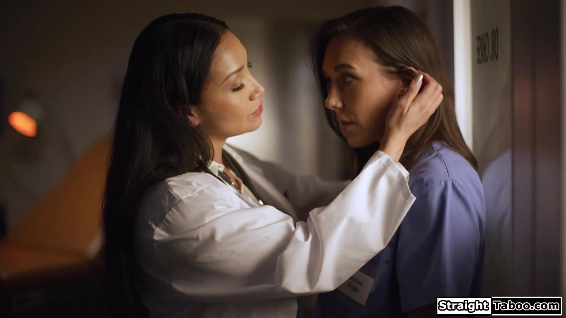 Latin milf doctor Vicky Chase seduces nurse Sinn Sage to comply to stay out of trouble.It works and the lesbians make out.The doctor sucks boobs and lets the nurse taste her pussy.She masturbates the small tits petite babe and licks her to an orgasm